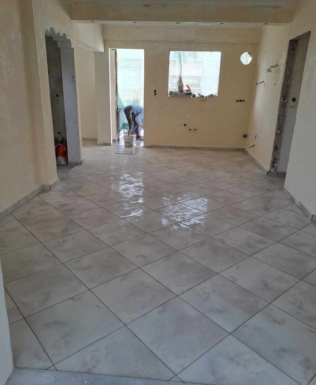 - την τοποθέτηση πλακιδίων σε δάπεδο