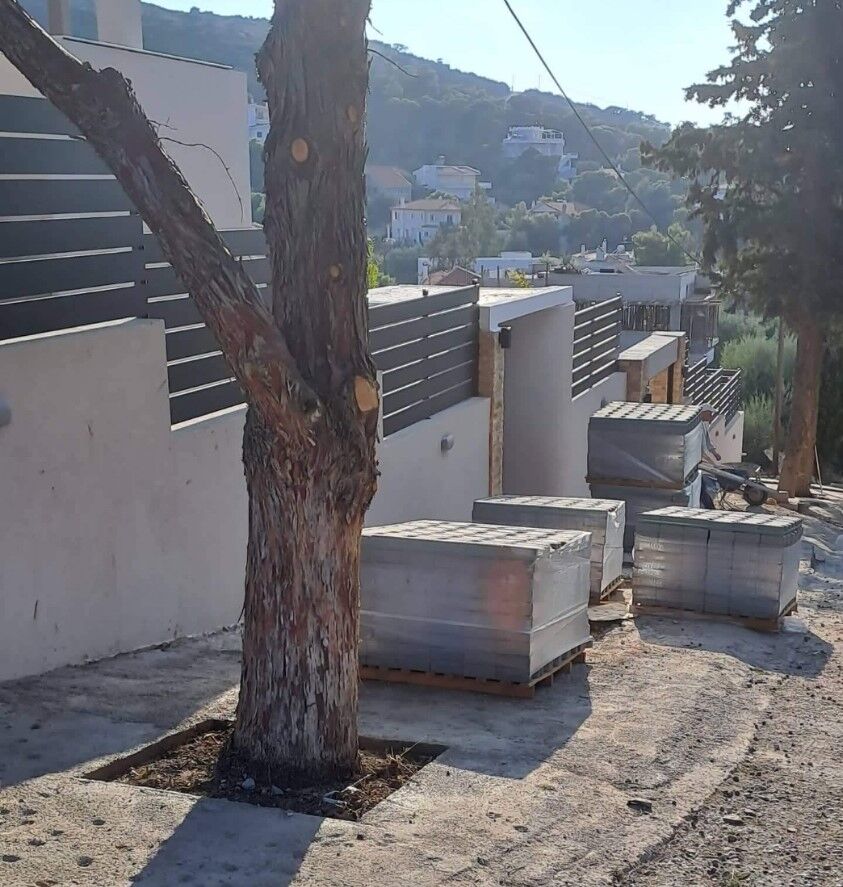 - την τοποθέτηση πλακών σε εξωτερικούς χώρους, πεζοδρόμια